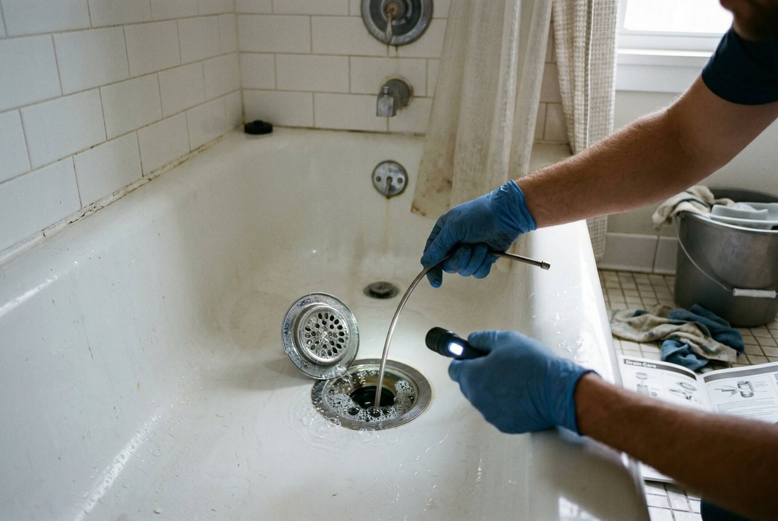 In many cases, the clog has not fully blocked the drain yet. The tub may still drain normally or only slightly slower than usual. However, the noise indicates that buildup inside the plumbing system is beginning to interfere with normal drainage.