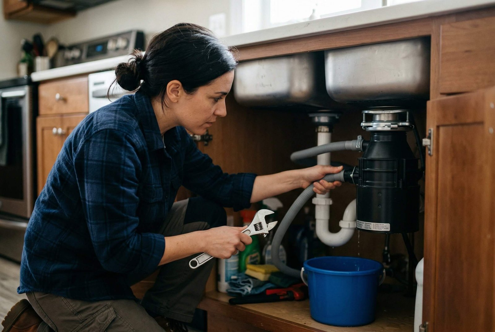 The right tool depends on whether the blockage is light, deep, recurring, or caused by the drain configuration itself. Starting simple and moving up only when needed is the safest way to fix the problem without damaging the sink, disposal, or dishwasher.