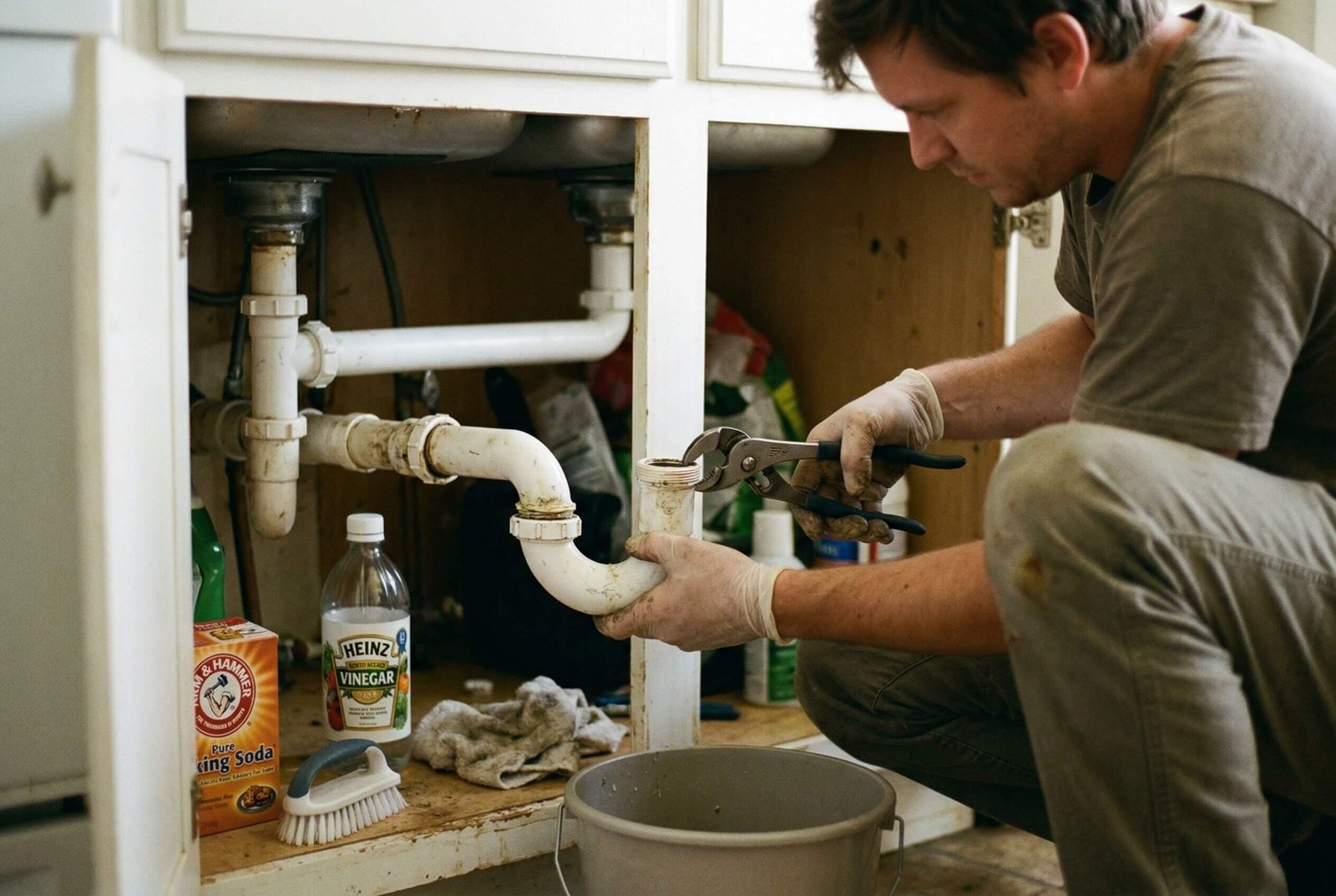 Once you’ve identified that the smell is likely coming from minor buildup or a surface-level issue, it’s best to start with simple, low-risk fixes. These methods are safe for most residential plumbing systems in U.S. homes and are often enough to eliminate odors caused by grease, soap residue, food particles, or light organic buildup.