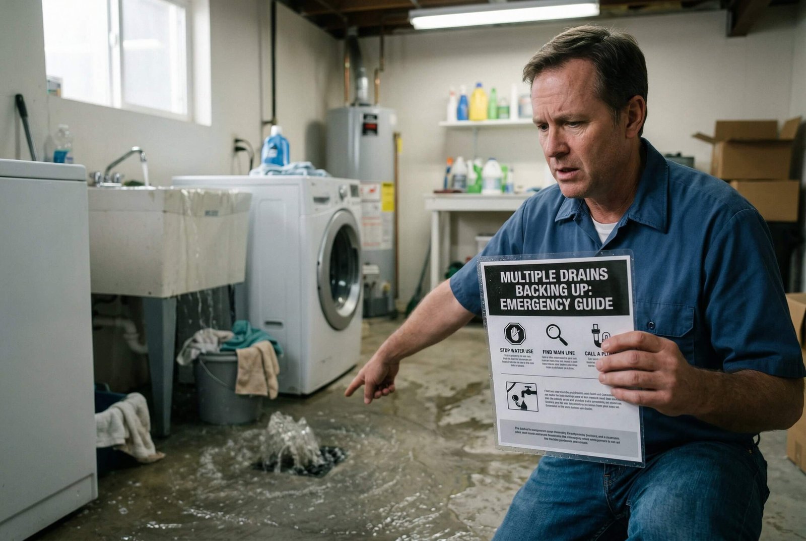 In a multi-drain backup emergency, the right response is not complicated—but it must be immediate and structured. Stopping water use, avoiding actions that increase pressure, and containing the spread are what keep the situation manageable.
